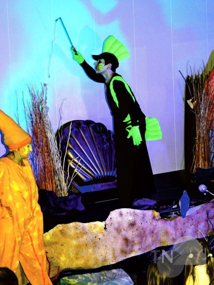 In diesem Jahr zeigte das Kindertheater das Stück „Es ist was los im Meer“. Von der ersten Reihe aus konnten die kleinen Zuschauer aus nächster Nähe erleben, wie ein Kugelfisch und eine Meeresschildkröte gemeinsam auf Schatzsuche gehen. In einer Flaschenpost fanden sie eine Schatzkarte, die allerdings ein Loch in der Mitte hatte. Das fehlende Stück musste unbedingt gefunden werden und bei der Suche danach begegnen den beiden allerlei Meeresgetier. Die filigrane Qualle, der leuchtende Seestern, der große Rochen und der sportliche Krebs konnten bei den Nachforschungen nicht helfen. Auch der schimmernde Fisch, das grazile Seepferdchen, der mystische Anglerfisch und der unheimliche Hai wussten nicht weiter. „Bei der Karte fehlt ein Stück – unser Stück zum Glück“, sagte der Kugelfisch. „Hinter der Muschel!“, rief der Nachwuchs im Publikum. Schließlich fanden die Wasserbewohner das fehlende Stück hinter der großen Muschel, die mitten auf der Bühne thronte. Natürlich führte der Weg direkt zum Schatz – eine Kleinigkeit zum Naschen für die kleinen Zuschauer fand sich in der geheimnisvollen Truhe. Diese waren wie gebannt von der kindgerechten Vorführung und eine Stunde stillsitzen war gar kein Problem. Der Besuch des Kircherbsen-Kindertheaters ist immer ein absoluter Höhepunkt für den Nachwuchs. Beim anschließenden Theater-Café genossen die kleinen Gäste ein Stück Kuchen, während sich die Eltern einen heißen Kaffee gönnten.