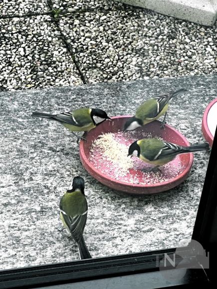 Damit wir die Tiere besser beobachten können, haben wir zusätzlich Futterschälchen direkt auf den Stufen zur Terrasse aufgestellt. Dann kann es vorkommen, dass vier Meisen gleichzeitig anfliegen. Als es richtig kalt war, saßen sogar Blau- und Kohlmeise beisammen, um ihren Hunger zu stillen. Inzwischen haben sie sich an uns Menschen gewöhnt und fressen weiter, wenn man sich der trennenden Glasscheibe nicht allzu sehr nähert.