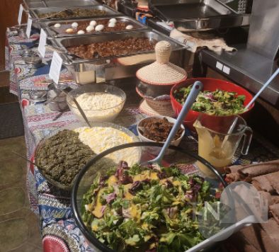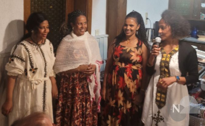 Der Saal in der Gemeinschaftsunterkunft, dem ehemaligen Gasthaus Zur Rose, war bis auf den letzten Platz gefüllt. Das begeisterte Publikum darf sich bei den vier Damen Lwam, Abeda, Fiori und Salome bedanken. Ein reichhaltiges Buffet lockte, eritreische Spezialitäten wurden angeboten: Zignie, ein Schmorgericht mit zartem Rindfleisch; Derho, ein geschmortes Hähnchengericht mit würziger Berbere-Sauce, Zwiebeln, Knoblauch und Tomaten; Kitfo, gehacktes Rindfleisch mit einer Chili-Gewürzmischung – es ist sehr intensiv, scharf und voller Aromen und wird kombiniert mit Injera und Gomen (gewürzter Blattspinat). Zu allem wurde Injera, ein weiches Fladenbrot aus Teff-Mehl, serviert.