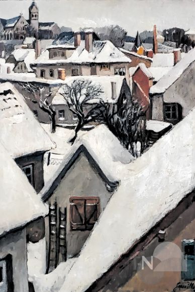 Voigt forscht weiter – bei Dietrich Kleipa, dem damaligen Stadtarchivar, der so eingespannt ist, dass er dieses Thema gleich an Voigt „outsourct“, bei Franz Estenfelder, Besitzer der Hornauer Mühle und letzter Müller in der Stadt und schlussendlich, im Jahr 2024, bei Julian Wirth. „Denn die Vermutung lag nah, dass es da noch mehr Gemälde geben könnte, geben müsste“, so Voigt. Mit Wirth kommt Bewegung in die Sache, ein weiteres Bild taucht auf, ein zweiter Künstlername erscheint, ebenfalls in NRW. Die beiden bekommen eine Adresse in Kelkheim. „Da waren weitere Bilder und ein dritter Name“, beschreibt Wirth den Augenblick, der wie elektrisierend ist.