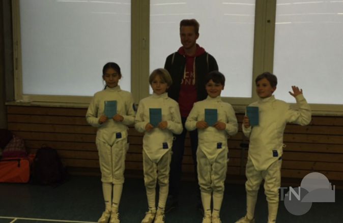 Doch nicht nur auf Wettkämpften stellte sich die Schneidhainer Fechtjugend unter Beweis: Wie jedes Jahr ging es nämlich auch in diesem Januar wieder nach Offenbach, wo vier neue Schneidhainer die Turnierreife erlangen sollten, um dann bald selbst auf der Planche stehen zu dürfen. Auf die Prüfung wurden die vier schon seit November letzten Jahres intensiv durch C-Trainer Nico Maute vorbereitet, der zum ersten Mal von den Nachwuchsassistenten Nick Hollenbach und Felix Fellhauer tatkräftig unterstützt wurde. So begaben sich der neunjährige Alexander Peters, die zehnjährige Julia Eifert, der neunjährige Arthur Bonrath und der achtjährige Henrik Hollstegge am 29. Januar erstmals in ihrer noch jungen Erfolgsgeschichte auf fechterische Reise.