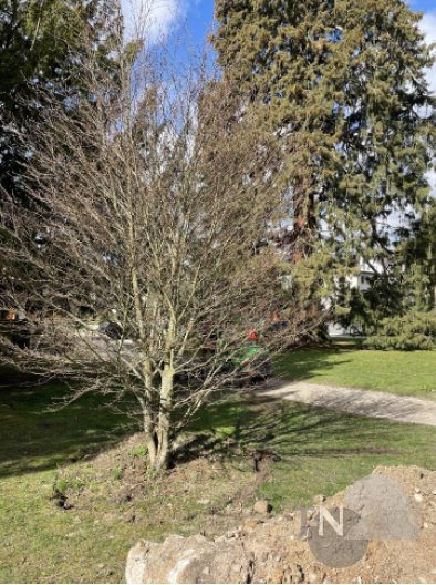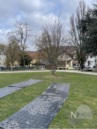 Und diesmal gab es auch keine Bauzäune und Halteverbotsschilder und kein Grundgrollen in den sozialen Netzwerken, welche vorab die Maßnahme ankündigten. Für die gute Tat vor Ostern gab es keine öffentliche Welle und kein Publikum. Und so waren am Mittwochmorgen auch nur zufällige Passanten in der belebten Konrad-Adenauer-Anlage um kurz nach 8 Uhr Zeugen der Aktion, als die beiden Bäume, eine Schlitzblättrige Buche – eine Form der Rotbuche – und eine Edelkastanie, geschätzt 25 respektive 15 Jahre alt, fachmännisch aus dem Boden genommen wurden. An ihrer neuen Destination, der etwas abgelegenen Faßbender-Anlage am Rande der Limburger Straße, waren ein Team von Kabel 1, das mit Kamera und Drohne den gesamten Tag für die Reportage-Reihe „Achtung Kontrolle“ begleitete, und der Redakteur der Königsteiner Woche sogar allein mit den Baumspezialisten.