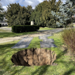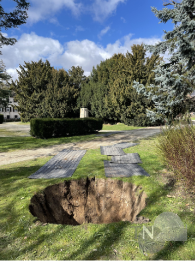 Rund drei Meter Durchmesser hat das Baumloch, das der Rundspaten ausgestochen hat.