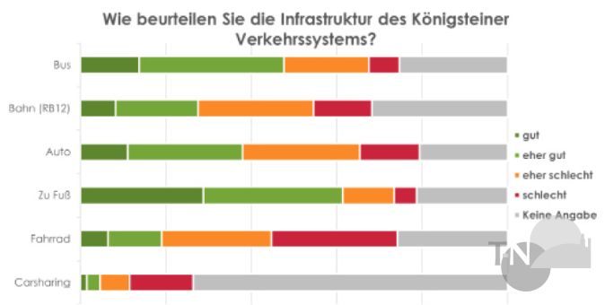 • Schwächen: Deutlich schlechter schneidet die Radverkehrsinfrastruktur ab. Auch die Unzuverlässigkeit der Bahnverbindung RB 12 wurde vielfach kritisiert.
