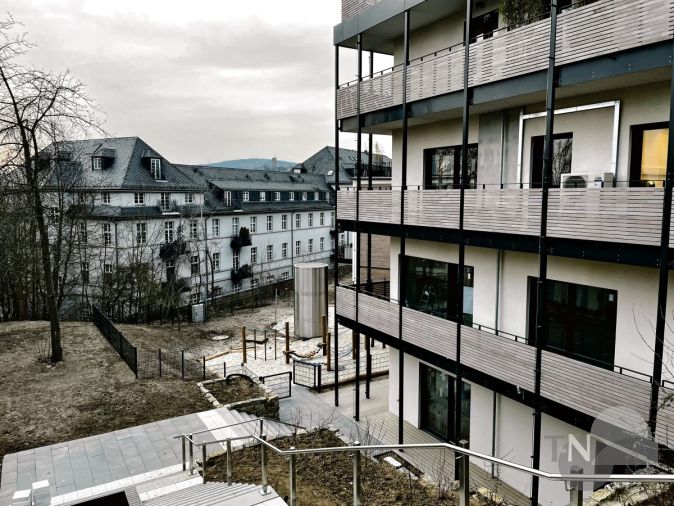 Insgesamt sind für eine Gesamtinvestition von rund 75 Millionen Euro für die Königsteiner Höfe auf dem 10.400 Quadratmeter großen Grundstück 75 Mietwohnungen mit rund 7.300 Quadarmetern Wohnfläche entstanden. Die Größe der Wohneinheiten reicht von der Zwei-Zimmer-Wohnung mit 46 Quadratmetern bis hin zur 225 Quadratmeter großen Penthouse-Wohnung mit umfassendem Ausblick unter anderem auf die Königsteiner Burg, die natürlich ihren Mietpreis kosten und zum Teil auch noch verfügbar sind. Alle Wohnungen sind hochwertig ausgestattet und weisen den KfW 55-Standard auf – und auch die Begrünung in den Höfen und zum Teil auch an den Hausfassaden wird jetzt im Frühling langsam wachsen.