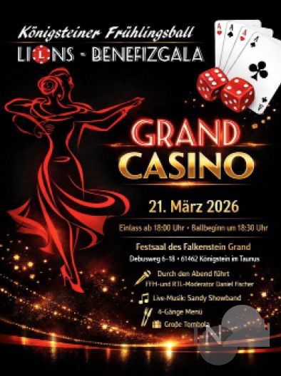 Am 21. März verwandelt sich der Festsaal des Falkenstein Grand in eine glamouröse Ballkulisse. Unter dem Motto „Grand Casino“ erwartet die Gäste eine Benefizgala, die Eleganz, Unterhaltung und soziales Engagement auf besondere Weise verbindet. Der Lions Club setzt damit seine Tradition fort, festliche Lebensfreude mit einem guten Zweck zu vereinen – ein Konzept, das seit Jahren für ausverkaufte Säle sorgt.