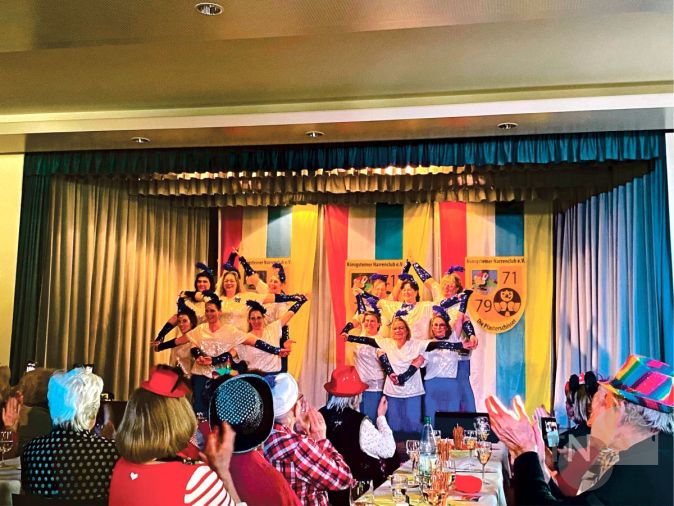 Um 14.11 Uhr konnte der unterhaltsame Nachmittag für die Senioren beginnen. Nicole Hülsmann begrüßte gemeinsam mit dem aktuellen Burgfräulein Málva mitsamt Gefolge das applaudierende Publikum. Die darauf folgenden Programmpunkte, beaufsichtigt durch den Bühnenmeister „Kurti“ Nachtsheim, reichten von süßen Tänzen der kleinen „Gummibärchen“ (Trainerinnen: Christa Kronberg und Nadja Sya) im Alter von zwei bis vier Jahren, über Akrobatikeinlagen der „Plaschi-Smarties“ (Trainerinnen: Leonie Stefansky und Andrea Bernsmann), Showtanz der erfahrenen „Resi-Dancer“ und Gardetanz der „Königstänzer“ mit präzisen, komplizierten Schritten der älteren Gruppen bis hin zu modernen Interpretationen der Lieder aus dem Film „Mary Poppins“ durch die „Sweet-Candy’s (Trainerin: Nicole Glässer) und selbstverständlich neckische Vorträge im Reimstil. Nach den Vorstellungen, die nebenbei den „roten Faden“ eines „Quotenmannes in den Frauentanzgruppen“ mit sich zogen, gingen die Vorführenden in einem tosenden Beifall mit dem dreifachen „Helau“ von der Bühne.