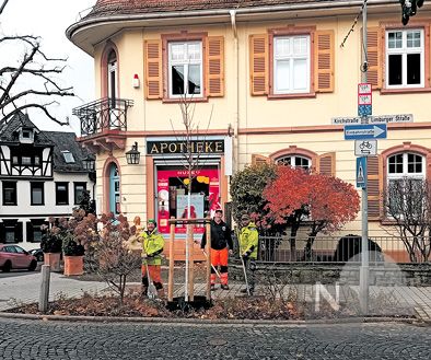 Der Herbst ist Pflanzzeit – auch für die städtischen Baumpfleger. Das ganze Jahr über schneiden und pflegen sie die knapp 3.000 städtischen Bäume an den Straßen und städtischen Gebäuden, in den Grünanlagen, Kindergärten, den Sportanlagen, Friedhöfen, im Woogtal und anderen Freiflächen. Im Herbst kommt eine Arbeit hinzu: die Pflanzung von Jungbäumen. Aktuell werden insgesamt 39 Bäume im Stadtgebiet Königstein sowie allen drei Stadtteilen von den fleißigen Mitarbeitern gepflanzt. Zusammen mit der Dezernentin für Grünangelegenheiten Gabriela Terhorst klären die Kolleginnen und Kollegen der Grünplanung und des Betriebshofes frühzeitig, welche Baumstandorte und welche Baumarten in Frage kommen. Dabei wird auch der Aspekt klimaangepasste Bäume mitberücksichtigt, um die Nachhaltigkeit der Pflanzungen zu gewährleisten.