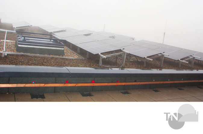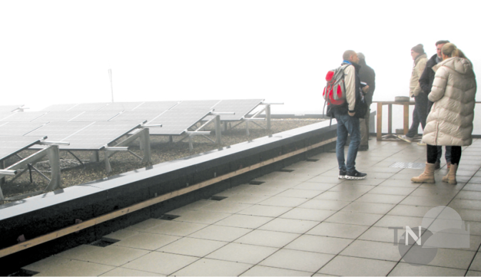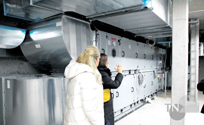 „Damit alleine ist es natürlich nicht getan.“ Prokesch referiert schon wieder, er steht jetzt im Außenbereich des zweiten Obergeschosses und zeigt auf die Solarpaneele. „Man muss nicht nur klimaneutral sein, sondern auch klimaresilient sein. Die vergangenen Sommer waren schon so heftig, die nächsten werden wahrscheinlich noch heißer. Und wenn es dann im August wieder über 30 Grad sind? Da gehen die Kinder ja ein! Teilweise bekommen wir also hier unsere eigene Energie her, die Lüftungsrohre vorhin haben Sie ja gesehen: Wir müssen die Räume vernünftig klimatisieren können. Und die Außenjalousien haben wir ja auch noch. Heizen im Winter werden wir mit der Anlage unten, die mit Gas und Pellets betrieben wird.“ Und isolieren, dazu dienen auch die Holzelemente an der Fassade („Imprägnierte Lärche!“, so Mayer-Haber).