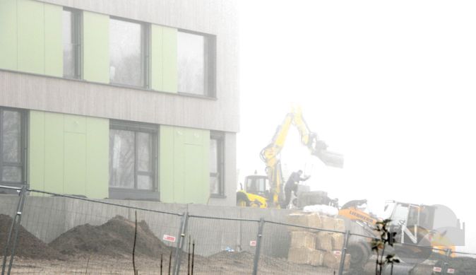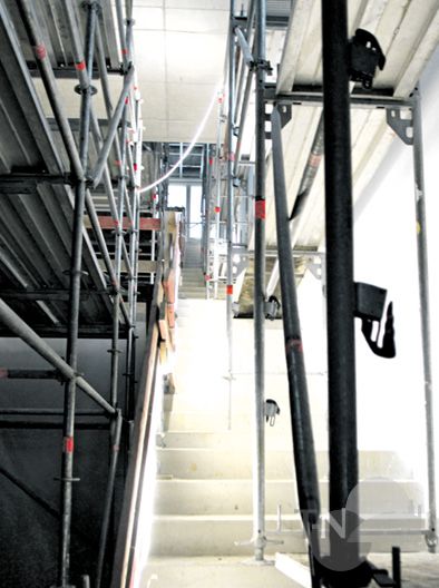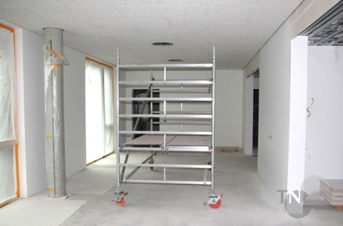 Während der Führung durch das Gebäude wird gebohrt und geschuftet, der Mann in dem Overall achtet auf alles und jeden, während er sein Kabelsammelsurium sortiert („Passen sie mit dem Kopf auf, da am Gerüst ist es ein bisschen eng“). Die Bauarbeiter sind auch am Samstag im Einsatz und schieben Sonderschichten, der Zeitplan will schließlich eingehalten werden, insgesamt über 4.500 Quadratmeter müssen hier bebaut und bearbeitet werden. Das Erdgeschoss, das für den U3-Bereich vorgesehen ist, das erste und zweite Obergeschoss für die Ü3-Gruppen, Besprechungsräume, Pausenräume, Gemeinschaftsräume, Sanitäranlagen, Wasserleitungen, Stromkabel, Internet, Isolation, Fußböden – es steht noch jede Menge auf der To-Do-Liste, alles muss abgearbeitet werden, ohne das pädagogische Konzept zu vernachlässigen. Das Miteinander soll hier gefördert werden.