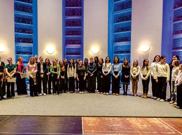 „Ob allein oder zusammen, die teilnehmenden Schülerinnen konnten ihr Können auf den verschiedensten Instrumenten beweisen. Organisiert vom Musikkurs der Stufe Q2 war ein abwechslungsreicher Abend garantiert.