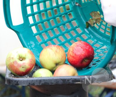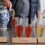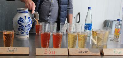 Im Hof des Bauernhofs wurden die Mammolshainer Streuobstwiesen-Äpfel vor den Augen der Besucher gepresst; das Endprodukt konnte man schräg gegenüber in der Scheune in vier verschiedenen Variationen bestaunen und vor allem erschmecken.