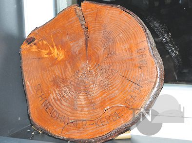 Unter den Ausstellungsstücken war auch eine Baumscheibe des Kerbebaums von 1990.