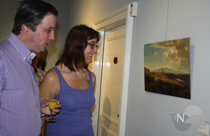 Viel Applaus gab es außerdem von allen Seiten für die Kuratorin Dr. Ingrid Ehrhardt. Bürgermeister Klaus Temmen, der auch der Museumsgesellschaft Kornberg als Partnerin in der Stiftung für die hervorragende Zusammenarbeit dankte, lobte ihre „hervorragende Arbeit“, die sie in ihrer wissenschaftlichen Begleitung und der Vorbereitung der zahlreichen Ausstellungen seit vielen Jahren leistet. „Was für mich nach all den Dankesworten bleibt, sind die Bilder“, befand die Kuratorin, und schon begab sie sich mit ihrem interessiert lauschendem Publikum zurück in die 40er-Jahre des 19. Jahrhunderts, in denen es den Künstlern der Kronberger Malerkolonie um den Blick auf die unverfälschte Natur ging, „die Einheit zwischen Mensch und Natur und zwar diesmal auch zu Wasser nicht nur zu Land“. Dazu gesellen sich Porträts und Genreszenen des bäuerlichen Lebens, erklärte sie und wies in diesem Zusammenhang auf das strickende Bauernmädchen im ersten Raum des Museums hin, das dank der Taunus Sparkasse, die das Gemälde von Philipp Rumpf zusammen mit dem benachbarten Aquarell von Jakob Becker dauerhaft der Stiftung Kronberger Malerkolonie zur Verfügung gestellt hat, dort zu sehen ist. Rumpf (1821-1896) hatte sich seinerzeit hauptsächlich mit dem Bild der Frau beschäftigt, seltener malte er Kinder, nur vereinzelt Männer. Die Erklärung für seine Bildwahl machte er selbst: „Ich bin der Maler meiner Familie, im eigenen Hause habe ich alle Motive für meine Bilder gefunden. Früher malte ich meine Frau in ihren Beziehungen zu den kleinen Kindern, jetzt sind die Buben und Mädchen groß geworden und ich male sie in dem harmlosen Leben und Weben, das ihren Jahren eigen ist.“