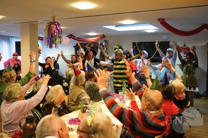 Als besonderer Gast kehrte das aus lange zurückliegenden Fastnachtssessionen bekannte und schmerzlich vermisste Büttentalent Irmgard Bettenbühl auf die Narrenbühne zurück, ihr Thema: „Abnehmen und was dabei alles schiefgehen kann“. Zum krönenden Abschluss wirbelten dann auch noch die Mitarbeiter des Pflege- und Betreuungsteams mit Jasmin Berghaus, Leiterin Soziale Dienste und Tagespflege, sowie Einrichtungsleiter Matthias Kulessa-Bartnitzki an der Spitze leichtfüßig übers Narrenpodium.