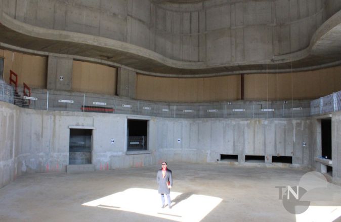 Kronberg (mw) – Wie eine sanft ankommende Welle schwingen sich die Wände des Kammermusiksaals abwechselnd konkav und konvex einmal rund und bilden einen Korpus. Bereits im Rohbau beeindruckt diese organische, fließende Form. Der entstandene Raumkörper entfaltet seine feine Ästhetik und generiert Vorfreude, diesen Saal nach Fertigstellung musik- und lichtdurchflutet zu erleben. Der Gründer und künstlerische Leiter der Kronberg Academy, Raimund Trenkler, erklärt beim Rundgang durch den Rohbau des Casals Forums und des angrenzenden Studienzentrums am Bahnhof, dass die Rundungen in enger Zusammenarbeit zwischen dem Architekten und dem Hörakustiker entstanden sind. Der 600 Besucher fassende Kammermusiksaal, genannt Casals Forum, wird, was das Hörerlebnis betrifft, einzigartig in der Rhein-Main-Region sein. Was ihn außerdem so besonders macht, ist die Transparenz, mit der er vom Architekten Volker Staab konzipiert wurde: Er öffnet sich rundherum in seine Umgebung, erlaubt Einblicke genauso wie Ausblicke, ganz anders als beispielsweise der Kammermusiksaal der Alten Oper. Während die Säle größtenteils, so wie auch der Carl Bechstein Saal, der zweite kleinere Saal, der neben dem großen Kammermusiksaal entsteht, kein direktes Außenlicht beziehen, steht der große Kammermusiksaal im Spannungsfeld von Innen und Außen. Wer diesen Saal besucht, wird ein ganz neues Musikerlebnis haben, denn der Saal wird sich einbetten in Kronberg als einer Stadt im Grünen; das jedenfalls hat sich der bekannte Schweizer Landschaftsplaner Enzo Enea zur Aufgabe gemacht: Der Blick ins Grüne soll Raum für Kontemplation schaffen. Ganz anders als andere Kammermusiksäle wird der Besucher hier nicht inmitten einer Großstadt, sondern direkt am Victoriapark empfangen, der sich gestalterisch öffnen soll, um sein Grün bis hinunter auf den Platz zwischen Hotel und Kammermusiksaal hineinzutragen. Zu diesem Zweck soll ein kleiner Bachlauf am Kammermusiksaal vorbei zum Platz hinunter geführt werden, zweireihig gesetzte Bäume sollen den Weg weisen. Auf dem Platz sind jetzt schon tiefe Pflanzbeete ausgespart, die das Pflanzen von sieben Meter hohen Bäumen trotz darunter liegender Tiefgarage möglich machen.