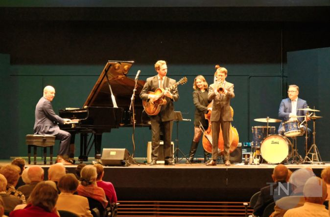 Mit dabei, wie angekündigt, war auch Trompeter Thimo Niesterok, den Chris Hopkins als einen der führenden Swing-Trompeter seiner Generation vorstellte, was dieser auch sogleich unter Beweis stellte. Schon mit vielen namhaften Jazzpersönlichkeiten hat er auf der Bühne gestanden, nicht nur mit dem amerikanischen Jazzposaunisten Dan Barrett, den Chris Hopkins bei seinem letzten Konzertbesuch im Altkönig-Stift mitgebracht hatte, sondern auch mit Emil Mangelsdorff, vielen weiteren Jazzgrößen und dem Glenn Miller Orchestra.