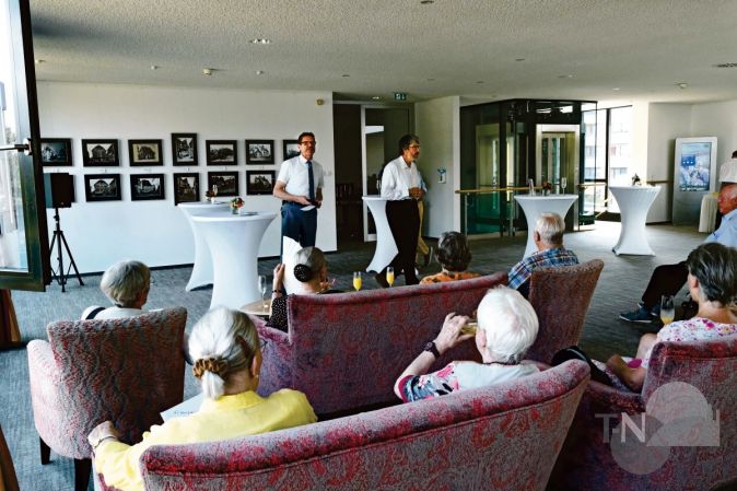 Kronberg (pf) – Nicht die Zahl der ausgestellten Fotos, sondern die Geschichten dahinter waren es, die am Freitagnachmittag bei der Ausstellungseröffnung das zahlreich erschienene Publikum im oberen Foyer des Altkönig-Stifts faszinierten. „Kronberg Alt / Neu“ war Titel der Ausstellung, in der der Kamera Klub Kronberg sieben alte und neue Fotos bekannter Kronberger Gebäude einander gegenüberstellt. Die historischen Aufnahmen sind Abzüge von noch auf Glasplatten überlieferten Negativen, die dem Klub vor vielen Jahren geschenkt wurden. Die neuen Fotos haben Mitglieder des Kamera Klubs Kronberg erst in jüngster Vergangenheit gemacht, zur gleichen Jahreszeit vom gleichen Standpunkt aus.