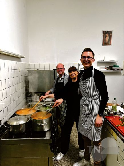 Im Anschluss überreichte Kahl den Köchen noch verschiedene Kochutensilien, darunter ein Satz Kochlöffel aus afrikanischem Bambus, als Dankeschön. Zwischendurch sorgten die Heilig-Geist-Schwestern mit der Darbietung eines Gebets in Kiswahili, bei dem die Gäste freudig mitklatschten, für das gewisse afrikanische Flair.