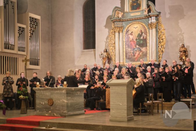 Oberhöchstadt (kb) – Früher Sonntagabend in St. Vitus. Es herrscht eine feierliche Stimmung. Die erste Kerze am Adventskranz ist entzündet und auf den Kirchenbänken leuchten Teelichter. Im Altarraum haben sich die Chöre von St. Vitus, Oberhöchstadt, und St. Josef, Frankfurt-Eschersheim, versammelt sowie ein Kammerorchester und vier Gesangssolisten. Sie alle blicken konzentriert zu Roswitha Bruggaier. Die hebt den Taktstock, und dann – Mozart!