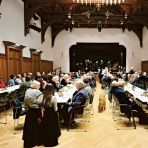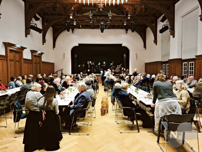 Im zweiten Teil der Zusammenkunft wartete auf die 130 Teilnehmer ein kalt-warmes Buffet. So ließ sich in fröhlicher Runde bei anregenden Gesprächen der inzwischen bei manch einem Teilnehmer aufgekommene Hunger und Durst auf angenehme Weise in Erwartung des gerade begonnen Schweikard-Gedenkjahres stillen.