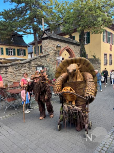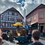 Dank seiner „Musik auf Rädern“ konnte das Universal-Druckluft-Orchester an verschiedenen Orten in der Innenstadt unterwegs sein und mit seinem ganz eigenem Charme für ordentlich Stimmung bei den Gästen sorgen. Das weltweit einzigartige Ensemble mechanischer Musikapparaturen und sein Musikmaschinist zog die Blicke Vieler auf sich. Ähnlich aufmerksamkeitserregend und doch anders, mit einem leicht skurrilen Charakter, zogen eine Schildkröte samt Rollator und Begleitung durch die Gassen. „Pantao“ mit „Großmutter auf Reisen“ hatte es besonders den kleinen Besuchern angetan, die der Schildkröte begeistert zuwinkten und rätselten, was sie denn in Kronbergs Altstadt suche.