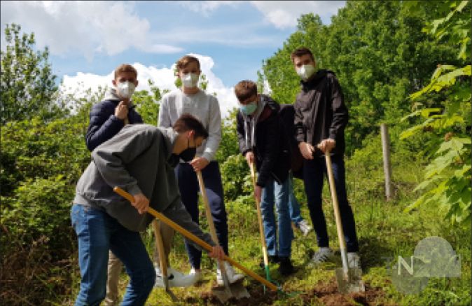Schüler der Klasse 9Gb beim Anlegen der Blumenbeete