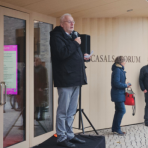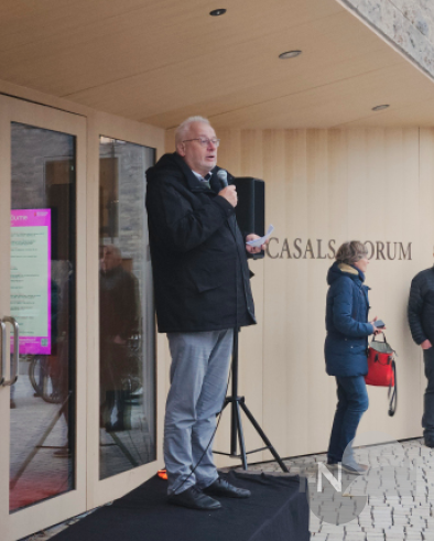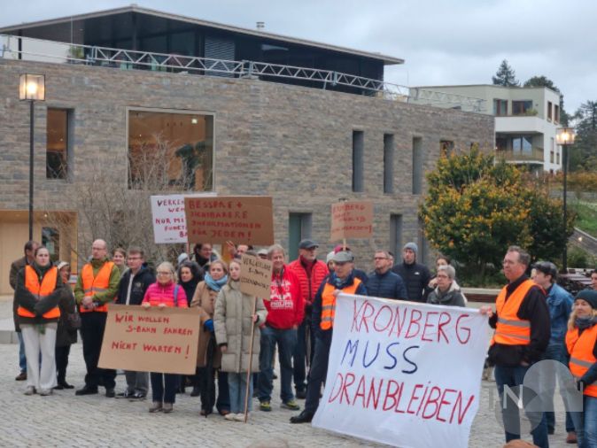 Viele Menschen begrüßten bekannte Gesichter, „Wie schön, dass du auch da bist“, hörte man hier und da auf dem Platz. Pünktlich zu Beginn der Kundgebung ergriff Andrea Poe-rschke das Wort und begrüßte alle Erschienenen. Zunächst erläuterte sie, aus welchen verschiedenen Vereinen sich die Bürgerinitiative gebildet hatte, denn „Kronberg bleibt dran“ ist ein Zusammenschluss von Vertretern der Vereine Aktives Kronberg, BUND Kronberg, ADFC Kronberg, Freie Unternehmerinnen, Jugendrat Kronberg und das SDG-Café. Unterstützt wird die Initiative von der Kronberg Academy, die auch den Ort für die Kundgebung freigab. Hintergrund der Initiative, der Kundgebung und auch einer aktuell laufenden Petition ist die Unzuverlässigkeit der S-Bahn, auf die vor allem Pendler, Kinder, Jugendliche und Senioren angewiesen sind, um pünktlich zur Schule, zur Arbeit oder zu Terminen zu kommen. „Die BI gibt mit dieser Petition den Bürgerinnen und Bürger ein Sprachrohr und damit die Möglichkeit, ein deutliches Signal an die Verantwortlichen beim RMV und der DB Infra Go zu senden. Wir wollen, dass die Betroffenheit von uns Bürgerinnen und Bürgern aus Kronberg wahr- und vor allem ernst genommen wird“, so Poerschke. Auch Bürgermeister Christoph König sorgte mit seinen Worten für viel Applaus und Zustimmung. Sehr alltagsnah schilderte auch er die Probleme, die mit dem Bahn fahren einhergehen: Stundenlange Wartezeiten, Pufferplanung, Organisation einer anderen Transportmöglichkeit, falls doch wieder etwas ausfallen sollte. „Das kann man ab und zu machen, aber einfach nicht im Alltag“, so König. Die Konsequenz sei, dass die Menschen auf das Auto umsteigen, weil keine Lust und Zeit vorhanden sei, so viel Energie in das Warten und Kümmern zu stecken. Auch ein Kombiticket, das von vielen Institutionen herausgegeben wird, würde nichts bringen, wenn der Transport nicht zuverlässig sei. Als Grund benannte er die „jahrelang verfehlte Verkehrspolitik“, die man an den typischen Zug- und Personalausfällen merke und an der sich dringend etwas ändern müsse. „Ich habe kein Problem damit, dass die S-Bahn zwei Wochen nicht fährt, wenn ich danach nie wieder eine Meldung erhalte, dass meine Verbindung aufgrund einer Weichenstörung ausfällt!“ Er betonte, wie wichtig es dennoch sei, mit dem RMV in Kontakt zu stehen, denn eine Lösung sei das Ziel. „Lassen Sie uns zusammen daran arbeiten“, forderte er auf.