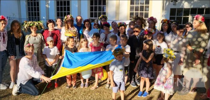 Oberhöchstadt (mw/kb) – „Gemeinsam sind wir stark!“, lautete das Motto des ukrainischen Volksfestes in Oberhöchstadt auf dem Gelände der Evangelischen Kirchengemeinde am vergangenen Samstag. Die Initiative und Organisation des Festes ging von der gebürtigen Ukrainerin Marianna Haus aus, die seit Anfang des Krieges in der Ukraine Hilfsgüter in Kronberg sammelt und über private Wege in ihre Heimat schickt. In dem Container ihrer Sammelstelle an der AKS lernte sie die Flüchtlinge kennen, die nach Hilfe suchten. So kam es zu der Kooperation und Gründung der Gruppe „Ukrainerinnen in Kronberg“, in der immer mehr Menschen zusammenfanden. „Bei einem Treffen im Park entstand die Idee, ein ukrainisches Volksfest zu feiern, um sich bei den großartigen Menschen in Kronberg zu bedanken“, erzählt sie. „Alle fanden die Idee toll und wollten unbedingt mitmachen.“ Vier Wochen wurde geplant und vorbereitet. Das Ergebnis war ein rundum gelungenes Kulturfest für die Flüchtlinge und alle interessierten Bürgerinnen und Bürger. Als Gastgeber zeigten die Ukrainerinnen und Ukrainern, welch herzliches Volk sie sind. So sprang der Funke bei den musikalischen Beiträgen schnell auf die auf der Wiese versammelten Gäste über. Um eine schöne Atmosphäre zu schaffen, hatte Marianna Haus keine Mühen gescheut. „Ich bin extra nach Frankfurt gefahren, um ukrainische Künstler, ebenfalls Flüchtlinge, zu uns einzuladen. Vor der Evangelischen Kirche sang die Ukrainerin Naina Doroschenko und spielte Bandura, ein Instrument, das es nur in der Ukraine gibt, der Ukrainer Bogdan Soljanyk faszinierte mit Gesang und Gitarrenspiel ebenfalls. Besondere „Stars“ an diesem fröhlichen, hellen Sommertag inmitten des dunklen Kriegsgeschehens waren das ukrainische Mädchen Ruth, die „Stephanie“, den ukrainischen Gewinner-Song der Eurovision 2022, sang sowie vier ukrainische Jungs, die in einem Lied die Stärke und Unbesiegbarkeit der ukrainischen Armee besangen. Es wurden moderne ukrainische Lieder über die aktuelle Situation in der Ukraine genauso wie alte, ukrainische Volkslieder angestimmt, eines, gesungen von Oksana Bondarchuk, die aus Kiew geflüchtet ist, handelte von Frauen, die ihre Heimat verlassen mussten und ihr Leid besingen: „Wenn ich die Flügel eines Adlers hätte, dann würde ich nach Hause fliegen.“ Eine ukrainische Künstlerin, Roksolana Holdak, präsentierte ihre Bilder und bot sie zum Verkauf, außerdem wurden handgefertigter Schmuck und Souvenirs angeboten, um Einnahmen für einen Rettungswagen für die Ukraine zu generieren. Die Unterstützung und Hilfe für das Sommerfest seien unbeschreiblich groß gewesen, freut sich Marianna Haus. Unterstützung kam von allen Seiten, von der Stadt Kronberg, die bei allen Fragen und Bitten (beispielsweise nach Tischen und Bänken) sofort half und neben Bürgermeister Christoph König nun auch mit mehreren Vertretern der Einladung zur gemeinsamen Feier gefolgt war. Unterstützung gab es von den Helferinnen der Evangelischen Kirchengemeinde in Oberhöchstadt ebenso wie von den Initiatoren der Gruppe „Spieltreffen für die Kinder und Eltern aus der Ukraine“, die sofort anboten, das Fest bei der Kirchengemeinde zu feiern. „Nach der Absprache mit dem Kirchenvorstand haben wir losgelegt. Es wurden Bilder von den Kindern gemalt, ein großes Plakat zum Thema Krieg in der Ukraine und es wurden in der Küche der Kirche Blumenkränze geflochten“, erzählt Haus weiter. „Um leckere Wareniki frisch für das Fest zu kochen, hat uns das Restaurant Magnolia sogar seine Küche zur Verfügung gestellt“, verrät sie. Nicht alle hätten die Möglichkeit gehabt, selbst etwas vorzubereiten, aber der Wunsch sei so stark gewesen, ein schönes Fest zu gestalten, bei dem die Kronberginnen und Kronberger sich wohl fühlen würden, dass sie über Bekannte oder ihre Gastfamilien versuchten, doch etwas kochen oder backen zu können. Am Ende konnte sogar besonderes ukrainisches Brot namens „Karawai“ serviert werden, das es nur zu besonderen Anlässen gibt. Neben den Wareniki (Teigtaschen mit Füllung, Weißkohl, Pilzen oder Kartoffeln) gab es ein vielseitiges Büfett mit Borschtsch, Kohlrouladen, Kartoffelpuffer, Dranyky, Pfannkuchen mit Leber oder Mohn, Mlynzi sowie verschiedene Kuchen und Torten. „Ob Deutsche oder Ukrainer, die Besucher waren von der Atmosphäre begeistert, sie bedankten sich für einen unvergesslichen Tag inmitten ukrainischer Kultur“, freut sich Organisatorin Haus, noch ein wenig erschöpft, vor allem aber beseelt von dem fröhlichen Dankeschön-Fest. „Die Ukrainer sprachen an diesem Tag von einer Art Heimatgefühl, das sehr gut ist und dass sie sich glücklich fühlen, die Sorgen in der Heimat für kurze Zeit loslassen zu können.“ Ein besonderes Dankeschön geht an alle Ukrainer, die sich fleißig bei der Vorbereitung und Durchführung des Festes beteiligt haben: Helen Nestyk, Julya Konotopska, Olena Moskalenko, Swetlana Kostenko, Oksana Masiy, Oksana Bondarchuk, Inna Cherchenko, Olja Golubeva , Vira Usowa, Olena Andreeva, Lisa Schutko, Tanya Schutko, Iryna Andriyenko, Roksolana Holdak, Olena Busenko, Irka Frys, Juriy Didevich, Bogdan Solynik, Naina Doroschenko, Nastya Posna, Julia, Dariya Balaschowa ,Karina, Olya, Tanya, Johannes, Svenja, Pia, Ruth , Wowa, Denis, Max, Martin und alle anderen Helfer und Helferinnen. Von den Besuchern wurde bereits der Wunsch geäußert, im Herbst ein ähnliches Fest zu feiern.