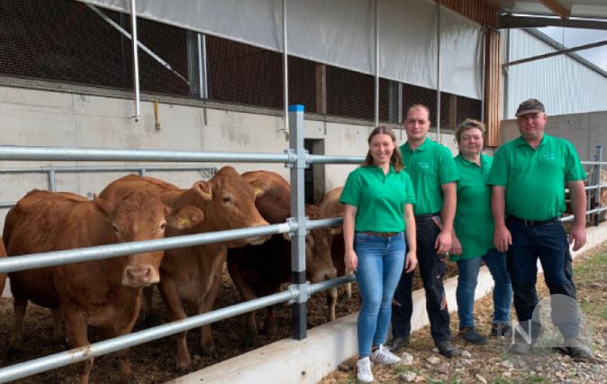 „Mein Schwiegervater wollte schon immer, dass es vorwärts geht“, erinnert sich Anette Hildmann beim Blick auf den erst zwei Jahre alten, hochmodernen Stall, den die Familie in den letzten Zügen der Coronapandemie draußen im Feld bei ihren Maschinenhallen errichtet hat. Bis zu 40 Rinder und etwa 60 Schweine können dort ein mehr als tiergerechtes Leben verbringen, ehe sie verarbeitet zu Wurst und Fleisch den Weg in Hildmanns Hofladen oder die Verkaufsautomaten finden. Großzügige Weiden für die Limousin-Mutterkühe, Auslauf für die Schweine, ein heller, luftiger Stall und Futter weitgehend aus eigener Erzeugung, ideale Bedingungen also, um Nutztierhaltung auf höchstem Niveau zu betreiben.