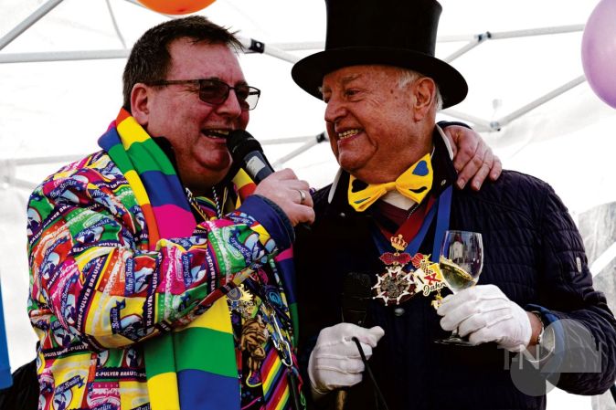 Wer wissen will, welcher Verein und welche Idee sich hinter welcher Zugnummer verbirgt, ist während des Zuges am Dalles in Oberhöchstadt genau richtig. Dort nämlich befindet sich nicht nur ein Verpflegungsstand, an dem man sich stärken kann, sondern vor allem auch der Moderationswagen des KV02. Und der ist mit einem besonders närrischen Dreigestirn besetzt. Gemeinsam mit Oberhöchstadts Vereinsringchef HG Kaufmann werden Kronbergs früherer Bürgermeister Klaus Temmen und Alt-Marktmeister Horst Neugebauer ihre karnevalistische Kernkompetenz unter Beweis stellen und mit viel Lokalkolorit durch den Nachmittag führen.