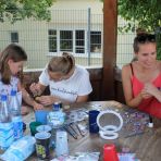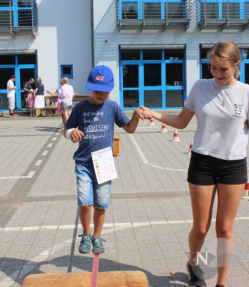 Oberhöchstadt (mw) – Zum vierten Mal in Folge wurde in Oberhöchstadt rund um den Dalles gemeinsam gefeiert. Gemeinsam, das bedeutet, ausgerichtet haben das Fest wie üblich die vier Oberhöchstädter Vereine Freunde der Waldsiedlung, Heckstadt Freunde Oberhöchstadts, der KV 02 und die SG Oberhöchstadt und der VdK Kronberg war mit einem Infostand vertreten. Gleichzeitig lockten über 30 Flohmarktstände mit Kleidung, Büchern, Spielzeug und vielem mehr zum Stöbern in den Ortskern. Ab 14 Uhr startete dazu noch eine Kinderrallye, die letztes Jahr bereits ihre Premiere feierte. Der Wunsch, etwas für Familien mit Kindern anzubieten, bestand schon länger, erzählen Markus Trusheim, erster Vorsitzender der SKG Oberhöchstadt und Yvonne Ruppel-Kulick vom KV 02. Mit der Erschließung des neuen Wohngebietes in Oberhöchstadt seien wieder viel mehr junge Familien vor Ort. Was liegt da näher, dass sich ihnen die Vereine, die selbst Kinder- und Jugendarbeit machen, ihnen vorzustellen. Mittels eines Laufzettels konnten die Kinder mit ihren Eltern die verschiedenen Vereinsstände besuchen, um dort alle Aufgaben zu lösen. Für die Kinder, die alle Stationen auf ihrem Laufzettel erfolgreich besucht hatten, gab es am Ende sogar eine Medaille, die die Stadt Kronberg gesponsert hatte. Nach dem Start am Dalles und dem begehrten Lichtgewehrschießen im Dalleshaus, veranstaltet vom Sportschützenverein Oberhöchstadt ging die Reise weiter zum Porto Recanati-Platz, der zweiten Station, auf dem die Jugendfeuerwehr mit Wasserspielen aufwartete. Fortsetzen konnte man die Rallye am Schulhof der Grundschule Schöne Aussicht. Hier waren weitere Stationen zu erleben, der KV O2 ließ den Nachwuchs Bonbons im Konfetti-Eimer suchen, danach durften sie sich noch ein Glitzer-Tattoo machen lassen. Die SGO bot einen kleinen Fußballparcours an, das Rote Kreuz eine Erste-Hilfe-Station zum Üben und die SKG Oberhöchstadt hatte über den Schulhof verteilt mehrere Geschicklichkeitsspiele aufgebaut. Es gab einen Balanceakt auf einer Slackline genauso wie Schwedenschach und sogar einen kleinen Golfparcours. Großer Andrang herrschte jedoch nirgends.