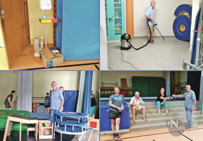 Kürzlich trafen sich Mitglieder des Vereins und des Vorstandes zum Hausputz der Taunushalle. Alle Beteiligten zeigten sich nach getaner Arbeit zufrieden mit dem Zustand der Halle und der Gerätschaften. Bekannt gegeben wurde von Seiten des Vorstandes, dass der Sportbetrieb nun wieder aufgenommen wird. Die Trampolinturner machten bereits den Anfang in der Halle der Altkönig-Schule. Nun folgen seit dem 29. Juni auch weitere Gruppen in der Taunushalle. In den Ferien wird es zudem einen Ferien-Sportkindergarten geben.