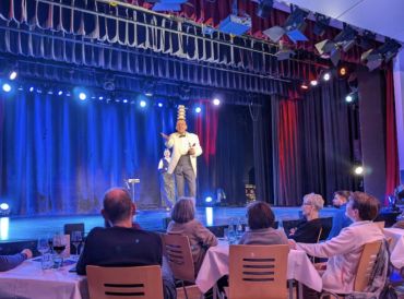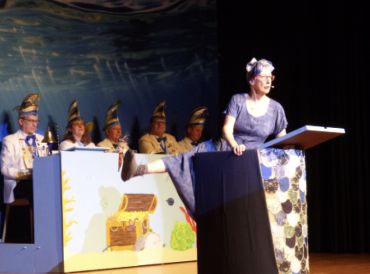 Bad Homburg (xes). Wie im Urlaub, so fühlen sich die Gäste bei der Sitzung der Freunde des Carneval (FdC): Die Erlenbachhalle ist in tiefes Blau getaucht, die Tische sind schön dekoriert und das Bühnenbild zeigt eine zauberhafte Unterwasserwelt. Bevor sich aber alles in maritime Traumwelten flüchtet, tritt Protokollerin Tanja Pulver auf und holt das Publikum zurück in die Realität.