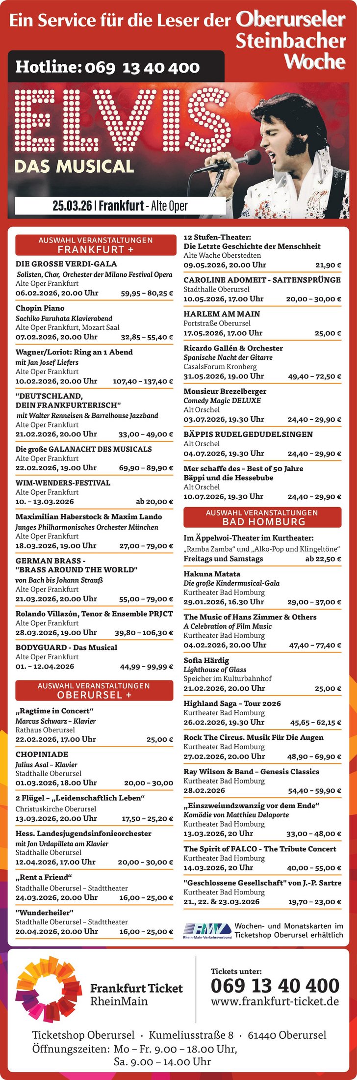 Zu allen touristischen Angeboten der Stadt Oberursel erhalten Interessierte jederzeit Auskünfte in der Tourist-Info im Vortaunusmuseum unter der Telefonnummer 06171-502 – 232 oder im Internet unter www.oberursel.de. Eine Kontaktaufnahme per E-Mail ist ebenfalls möglich unter tourismus[at]oberursel[dot]de. …