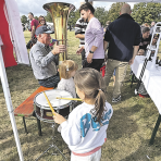 Heute ist das Apfelfest weit mehr als ein Erntedank-Event, bei dem der Direktsaft sofort probiert und gekauft werden durfte. Rund um die Wiese gab es vor allem für die Kleinen viele Attraktionen zum Ausprobieren: auf den beiden Hüpfburgen konnte man seine ganze Power rauslassen, um anschließend mit Apfelsaft seinen Durst zu löschen, die Musikschule Oberursel war vor Ort und der Musikzug Bommersheim erklärte Instrumente und wer den Mut hatte, durfte sie direkt selbst ausprobieren, wie ein „Minischlagzeug“ oder eine Tuba. Ihrer Kreativität und Geschicklichkeit durften die Kinder bei den Bastelmöglichkeiten, die die Stände der Kindertagespflege MOBILÉ und der Waldkindergarten Waldzwerge anboten, freien Lauf lassen und bei der der Kita Schatzinsel, die ihrem Namen alle Ehre machte, durften sie ihre Apfelschätze direkt per Druck aufs Papier bringen.
