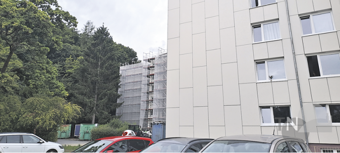 Bauvorhaben im Sankt-Hedwigs-Weg: Die Stellplätze vor dem Haus mit dem Gerüst wären betroffen.Foto: gt
