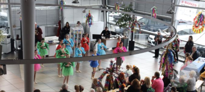 Wo sonst Autos im Verkaufsraum stehen, traten Garden, Brassband und Gasthoheiten im Autohaus auf, wie hier die „Minis“ vom BCV mit ihrem Showtanz.Foto: Tappenden