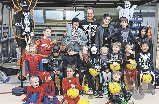 Die kleinen Basketball-Gespenster forderten auch ihre Eltern heraus, die plötzlich in das Gruseltraining involviert waren. Trainer-Werwolf Basti Knobl verwandelte den Hexenkessel in einen Pott voller Süßigkeiten. Freudigst und hochverdient griffen die Nachwuchsbasketballer zu.
