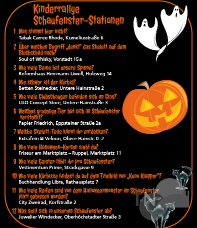 Die Halloween-Rallye bringt Leben in die Innenstadt und das macht Oberursel so besonders und deswegen steht es auch für Heiko Scholl von Fahrrad City und Antonia Stock von der Buchhandlung Libra außer Frage, diese Aktion zu unterstützen, zumal das Thema Grusel oft in Kinderbüchern vorkommt.