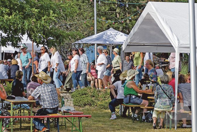 Nach diesem „offiziellen“ Teil, bei dem tüchtig Applaus gespendet wurde, rückte das Sommerfest selbst wieder in den Vordergrund und blieb es bis zum Sonntagnachmittag. Die Line-Dancer aus nah und fern freuten sich am Samstag über die Takte, die Country-Musiker Jim Everett vorgab, und am Sonntag bereicherte Sänger und Gitarrist Steven Taylor den Frühschoppen mit Songs von US-Stars wie Johnny Cash oder Alan Jackson. Und wer an diesem Wochenende auf den Geschmack kam, konnte sich gleich für das nächste Fest mit Hut und Weste rüsten, denn vervollständigt wurde das kleine Spektakel mit einem Westerndorf, in dem es passende Kleidung und vieles mehr zu entdecken gab.