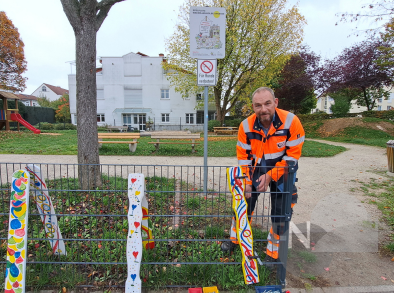 Die Montage aller 80 Zaunlatten übernahm Pierre Dieudegard vom Bau & Service Oberursel. So entstand ein gemeinsames, generationenübergreifendes Kunstwerk, das nun dauerhaft rund um die Mehrgenerationenfläche zu bewundern ist.