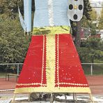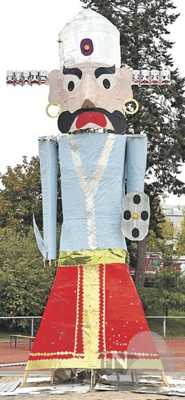Die Ravana-Figur mit ihren zehn Köpfen vor dem Anzünden.Foto: sis