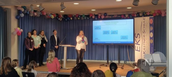 Das Schulleitungsteams informierte im Rahmen von Vorträgen ausführlich über die verschiedenen Schulzweige und pädagogischen Schwerpunkte der Erich Kästner-Schule und stand für Fragen zur Verfügung. „Der persönliche Austausch mit den Eltern ist uns sehr wichtig – heute gab es viele gute Gespräche“, berichtet Julian Stey, Schulleiter der Erich Kästner-Schule Oberursel
