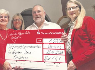 Die in Oberursel ansässige Dr.-Günter-Mann-Stiftung freut sich über die Spende. Robert Recknagel und Julia Janzen vom Stiftungs- und Generationenmanagement der Taunus Sparkasse …