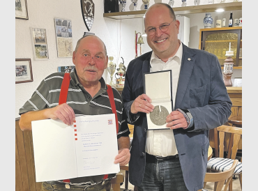 Oberursel (ow). Der hessische Ministerpräsident Boris Rhein hat dem Radfahrclub „Wanderlust“ Oberursel Bommersheim die Silberne Ehrenplakette des Hessischen Ministerpräsidenten verliehen. Mit der Auszeichnung werden aktive Vereine, die 100 Jahre oder älter sind, gewürdigt. Dem Ersten Kreisbeigeordneten Thorsten Schorr war es nun vorbehalten, die Plakette an den Ersten Vorsitzenden des Radfahrclubs, Achim Müller, zu überreichen. Noch heute ist der 98 Mitglieder starke Verein regelmäßig aktiv. Immer montags kommen die Mitglieder von April bis Oktober zum gemeinsamen Radfahren zusammen. Im …