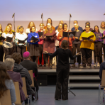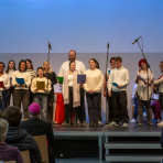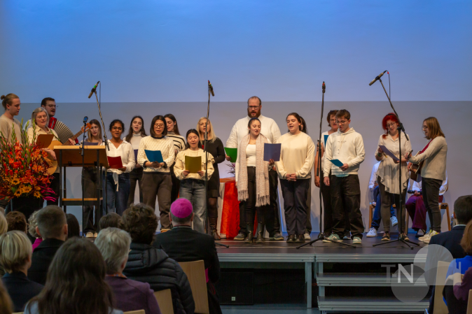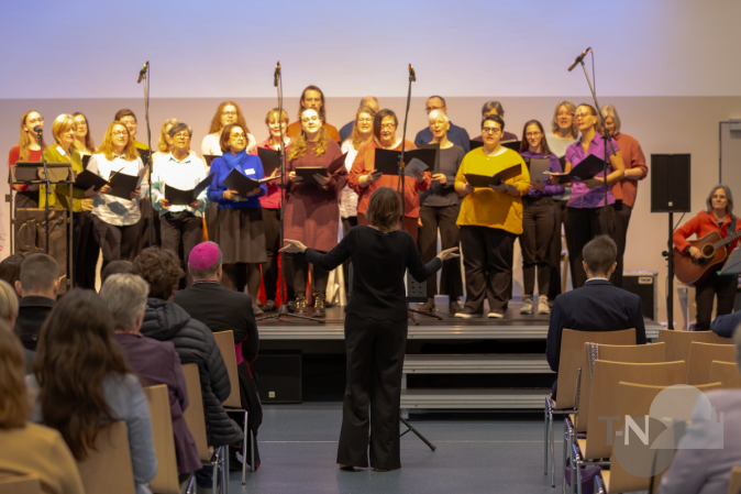 Vertreter*innen aus Bistum Limburg, Politik und Verwaltung würdigten die Arbeit der Schule. Sie sprachen von Verantwortung, Zusammenhalt und der Bedeutung sozialer Bildung - Themen, die an diesem Ort täglich gelebt werden. Besondere Begeisterung riefen die musikalischen Beiträge hervor. Den Auftakt machte das Bläserensemble, das sich aus einem Kollegen und der Schule verbundenen Musiker*innen zusammensetzte. Mit feinem Zusammenspiel und festlicher Leichtigkeit füllten sie den Raum mit Klang – würdevoll, klar und herzlich. Anschließend berührte der Chor aus Mitarbeitenden der Schule mit seiner Interpretation von „We shall overcome“. Die Stimmen vereinten sich zu einem eindrucksvollen Zeichen der Hoffnung und Gemeinschaft – ein Moment, der viele im Publikum sichtbar bewegte. Den schwungvollen Abschluss des musikalischen Programms gestalteten die angehenden Erzieher*innen aus der PivA2.