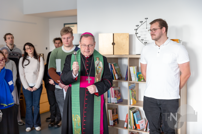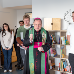 nicht wie eine Predigt, sondern wie eine Einladung: offen zu bleiben, zuzuhören und Haltung zu zeigen, wo es nötig ist. Der neu gegründete Schulchor füllte den Raum mit Liedern, die den Geist des Mottos spürbar machten: „Shalom, Salam“, „Da berühren sich Himmel und Erde“, „Das wünsche ich dir“. Es war, als würde man die Verbindung von Himmel und Erde tatsächlich hören können. Nach dem Gottesdienst segnete der Bischof die neuen Räume – begleitet von einer Delegation aus Schüler*innen, Studierenden, der Schulleitung und Mitarbeitenden. Still, würdevoll, feierlich schlicht.