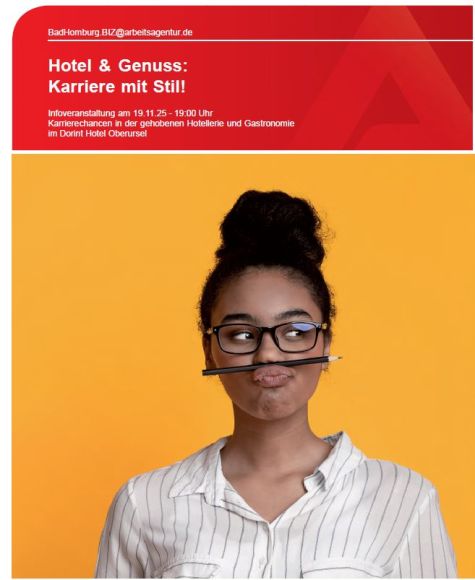 Die Agentur für Arbeit Bad Homburg lädt herzlich zu diesem außergewöhnlichen Info-Abend ins Dorint Hotel Oberursel ein. Neben dem Dorint Hotel werden weitere Sternehotels und Restaurants der Region ihre Karrierechancen vorstellen.