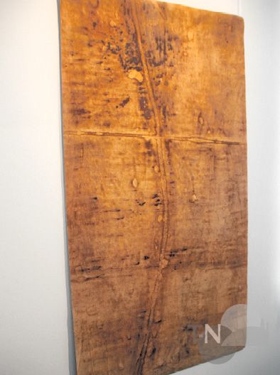Diese Wege, die spielen bei Helmer eine große Rolle. „WegStrecken“ heißt passenderweise ihre aktuelle Ausstellung (die in vier Bereiche unterteilt ist: Wegmarken, Erinnerungswege, Reisewege und Wasserwege), die man noch bis Sonntag, 23. November, in der Stadtgalerie im Badehaus in Bad Soden besuchen kann. Mit einem jungen afrikanischen Flüchtling fing es an, der erzählte Helmer von seiner beschwerlichen Flucht quer durch die Sahara – in der Folge entstanden ihre ersten Werke der „Wege“-Serie. Zudem (er)fand Helmer neue Wege in Sachen Farbherstellung, statt auf Acryl setzt sie also auf Selbstgemachtes: Erdpigmente befeuchtet sie mit ihrer Sojamilch und mischt das ganze zu einem Brei. „Der kommt dann auf den Tisch, mit Plastikfolie darunter, das Ganze trocknet dann vorerst fünf Tage – und danach noch einmal rund vier Wochen an der Luft.“ Sie nimmt sich viel Zeit für ihre Werke, gut Ding will eben Weile haben.